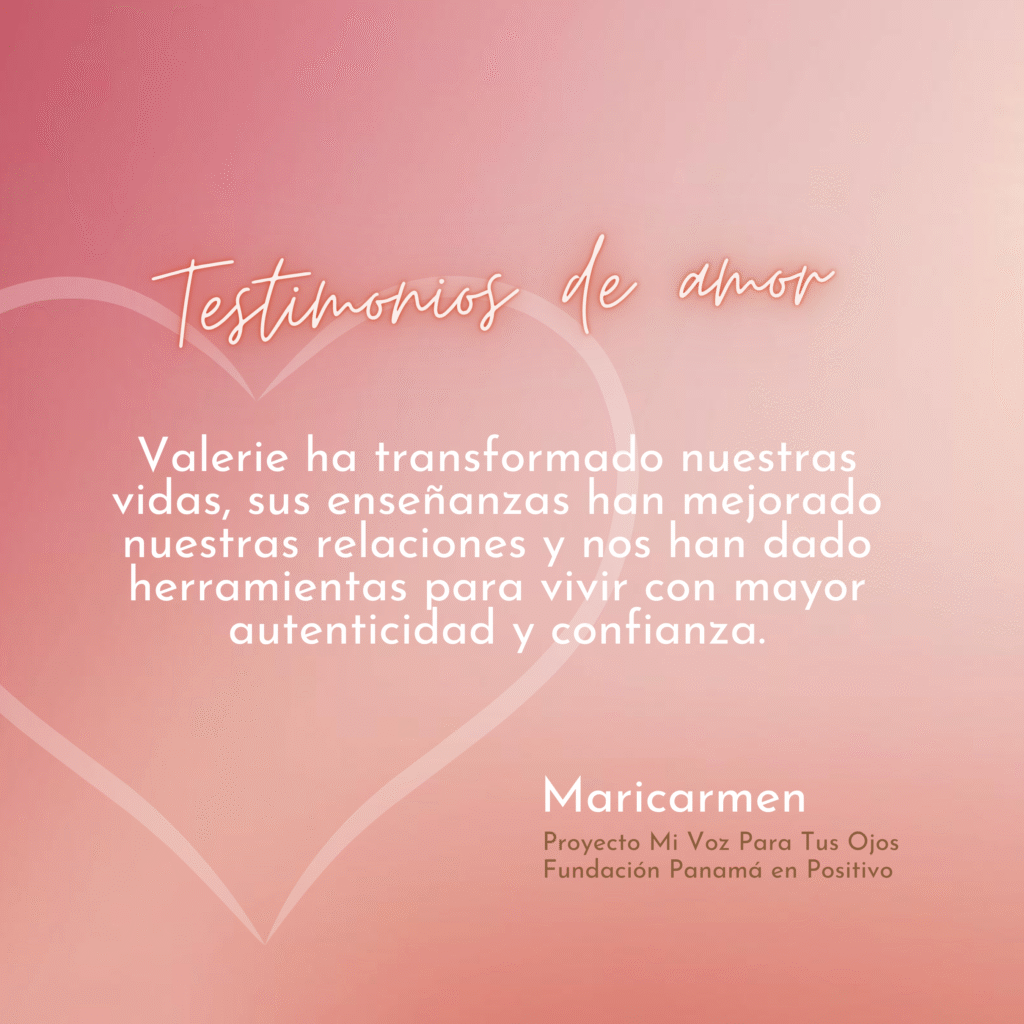 » Quiero contar mi experiencia sobre Diseño Humano en realidad conocí mucho sobre el valor y el perdón, porque mi vida ha tenido  muchos golpe que yo misma ni entendía hasta que conocí el manual de Diseño Humano junto a Valerie, que me ha enseñado como tengo que perdonar y valorarme como mujer y comprender mi  errores que cometía y no me daba cuenta gracia a Dios y Valerie  entendí que soy una mujer importante, constructiva  que tengo que amarme primero, yo y hacer las cosas correcta .Ahora entiendo el significado valor , amor y unión. Por último, quiero  agradecer a Dios por ponerme esta mujer un corazón grande y hermoso para entender todo esto gracias Valerie , te quiero mucho.»